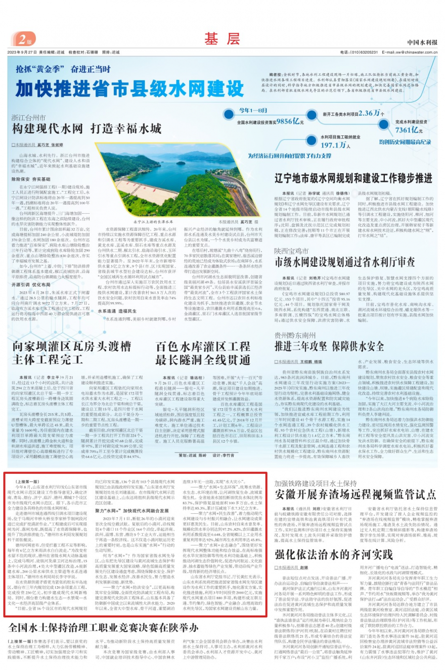 山東作為全國首批省級水網先導區,擔當作為、奮力攻堅,緊緊圍繞構建形成“系統完備、安全可靠,集約高效、綠色智能,循環通暢、調控有序”的省級水網,全面加快國家省級水網先導區建設,努力探索國家水網建設的“齊魯樣板”。