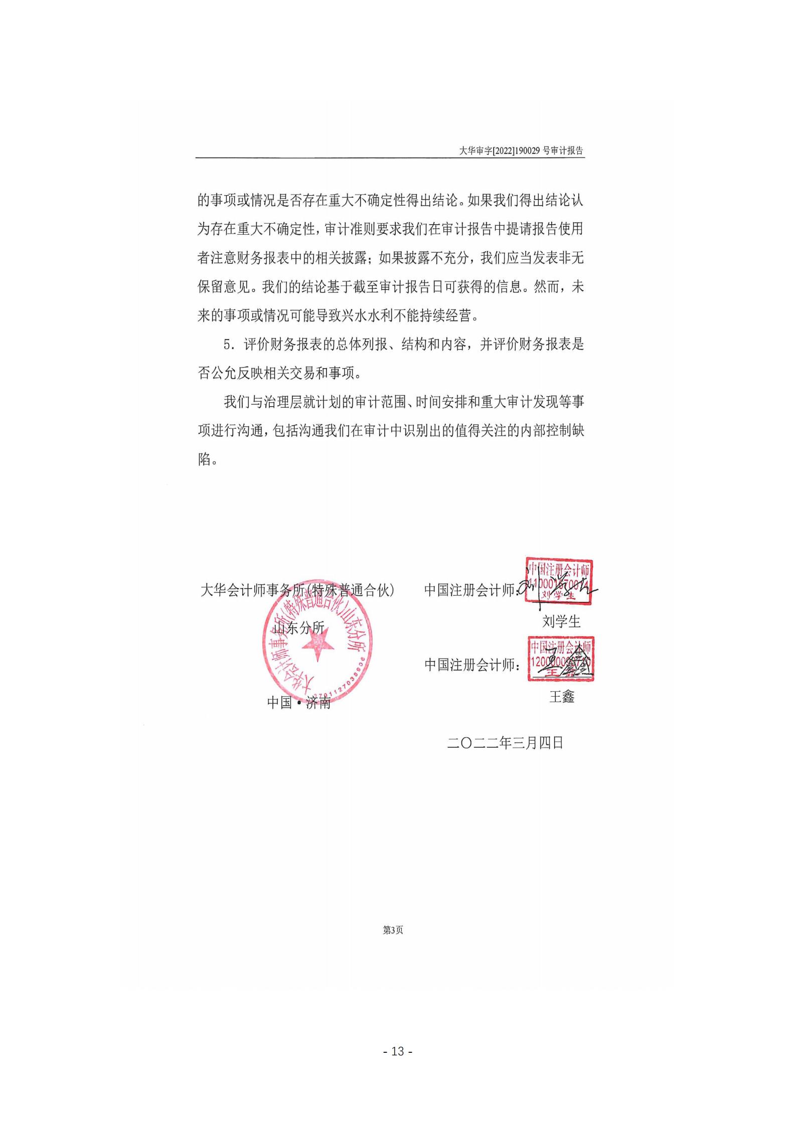 山東興水水利科技產(chǎn)業(yè)有限公司2021年度財務重大信息公告